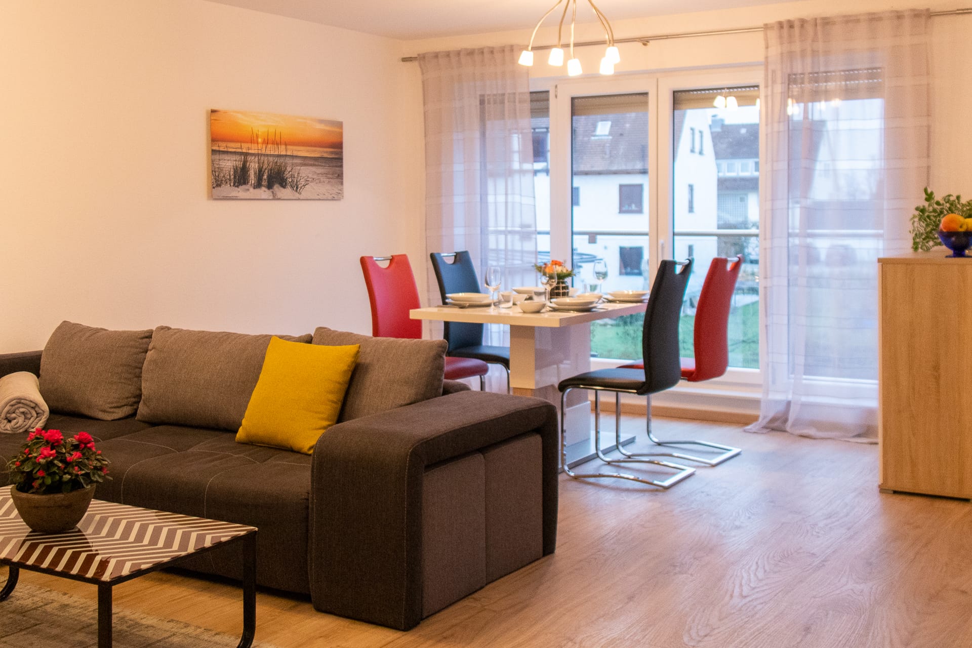 Unsere vier Ferienwohnungen befinden sich im 1. und 2. OG und zeichnen sich durch moderne Möbel und stilvolles Ambiente aus. Die Zimmer sind harmonisch und mit Liebe zum Detail aufeinander abgestimmt. Die großen Südbalkone laden morgens und abends zum gemütlichen Verweilen ein. Freuen Sie sich auf eine unvergleichliche Wohlfühl-Atmosphäre.