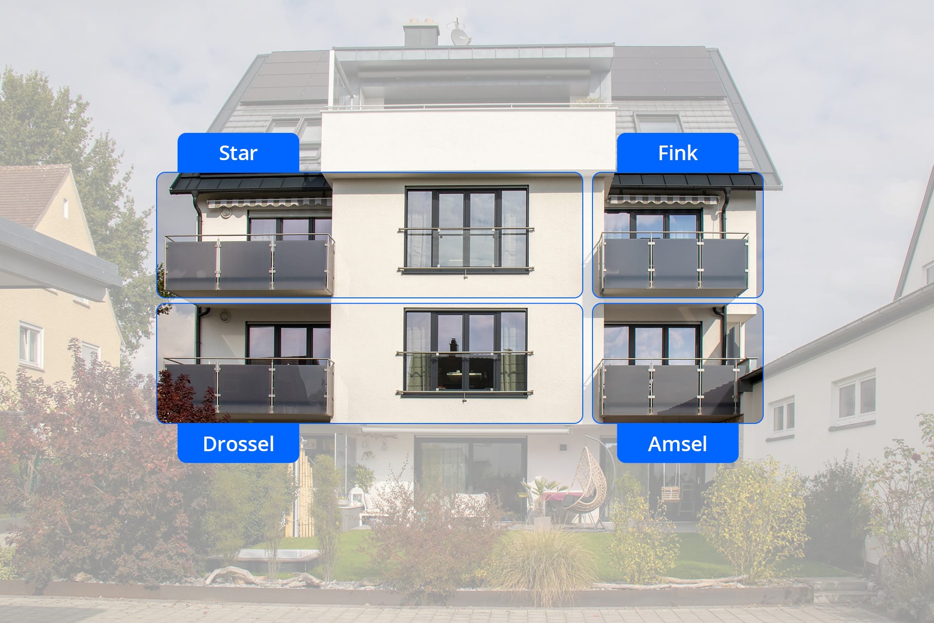 Unsere vier Ferienwohnungen Amsel, Drossel, Fink und Star im 1. und 2. OG sind liebevoll ausgestattet – lichtdurchflutete Räumlichkeiten und Balkone in Richtung Süden bieten Platz für zwei bis fünf Personen.
